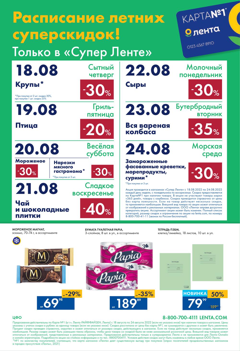 Каталоги акций в Ленте Супермаркет сегодня